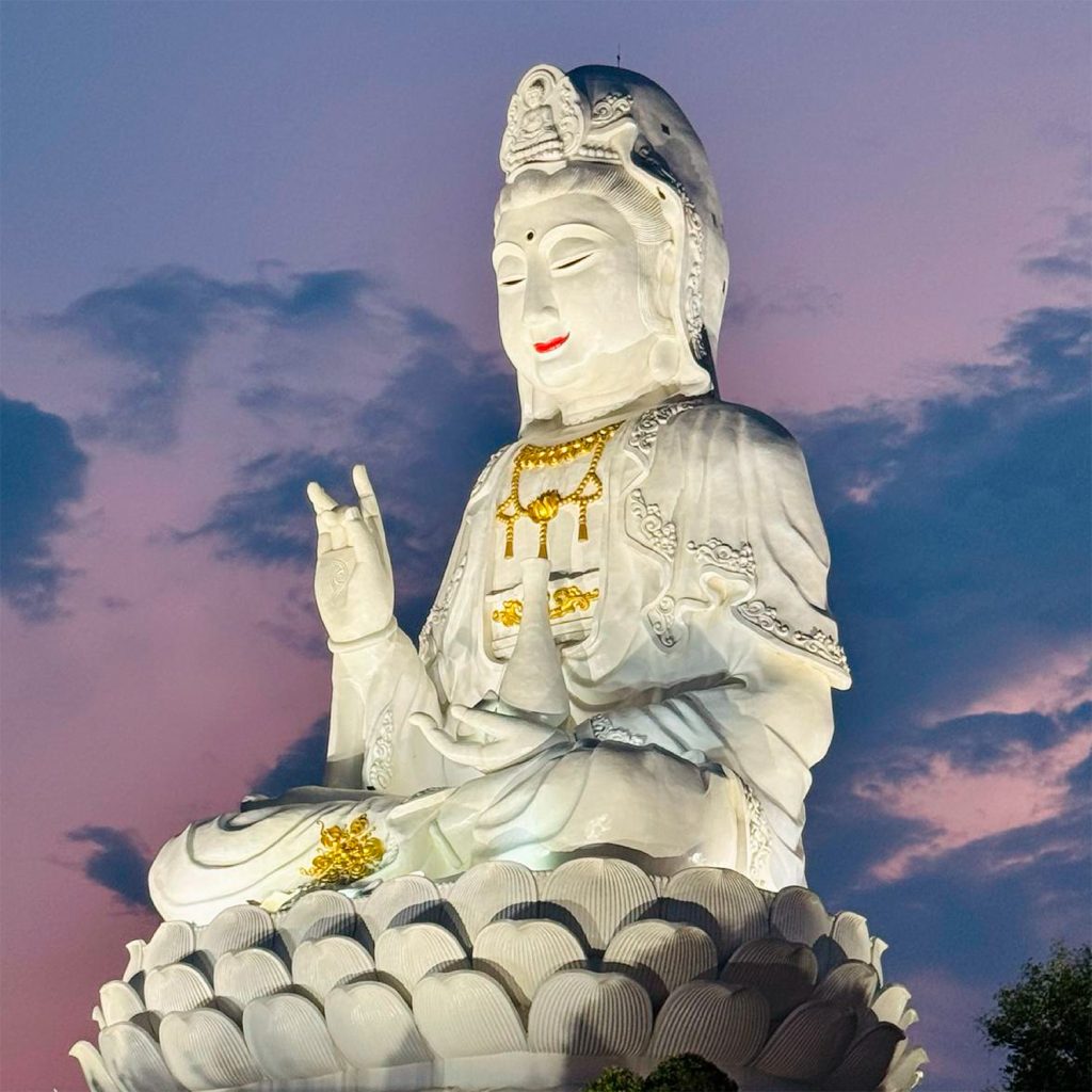 On a hill just north of Chiang Rai town is Wat Huay Pla Kang. A flight of white stairs lined with white dragons leads to the top of a mountain, where she sits on a pedestal of lotus flowers wearing a crown. Although the 90-meter-tall image is often called the Big Buddha of Chiang Rai, the image depicts Guanyin, the Goddess of Mercy. I cannot properly describe with words the beauty and tranquility of this place.